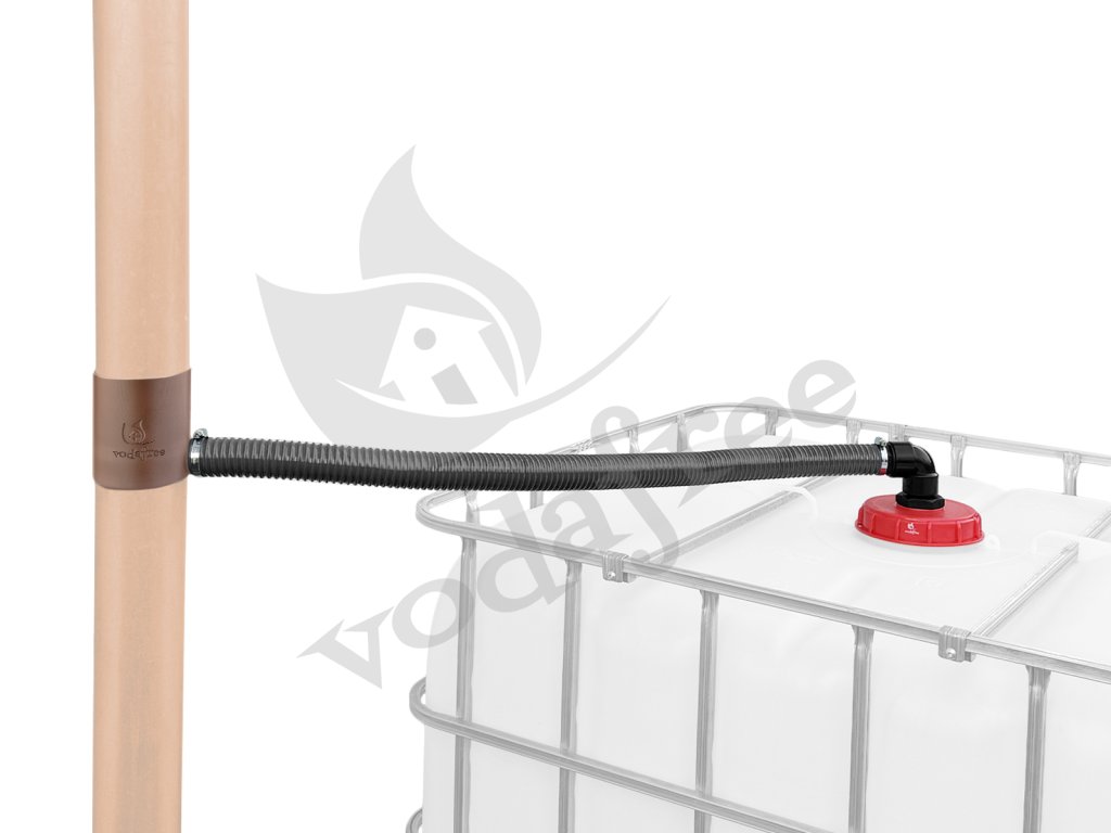 1. Necháte celou sestavu včetně připojení k nádrži a okapu sestavenou, jako když ji používáte v sezoně a spodní výpusť z nádrže OTEVŘETE, aby voda mohla volně vytékat. Případně připojíte silnou hadici na výpusť z nádrže a vodu svedete zpět do odtoku nebo odpadu. Pokud bude pršet, voda bude volně protékat sestavou a nikde vám nebude zůstávat. Pokud bude mrznout, voda nepoteče a zároveň vám nikde nic nezamrzne.